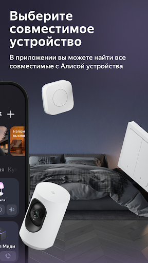 The app supports many devices labeled 'Works with Alice.' Check device compatibility in Settings > Device Management to add supported gadgets.