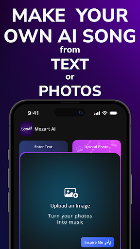 The AI analyzes visual elements of your photo to generate melodies and lyrics, transforming images into auditory experiences. This feature is available in the main creation workflow.