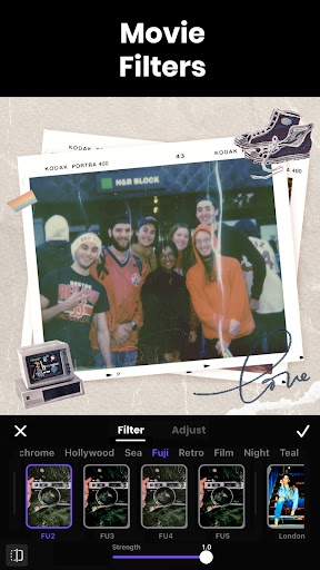 Includes various filters, transitions, and overlays to enhance video aesthetics creatively.