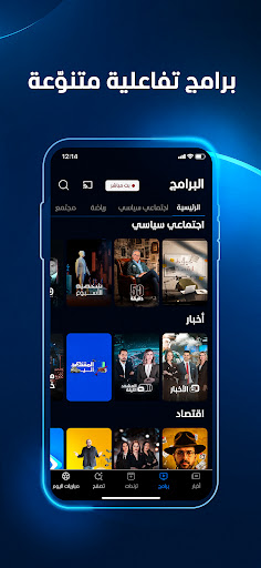 The app features entertainment news, shows highlights, and multimedia content tailored to Arab youth interests.