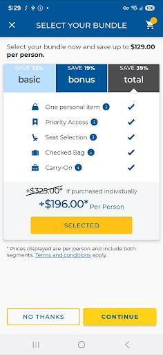 Can I upgrade to Priority Boarding or purchase checked baggage within the app?