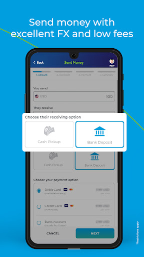 Tap on 'Send Money', select the recipient, enter amount, choose preferred payout method, and review the fee. Confirm to complete the transfer.