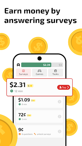 Prioritize surveys with higher ratings and match your profile to the app's suggestions. Complete both surveys and cash games for more earning opportunities.