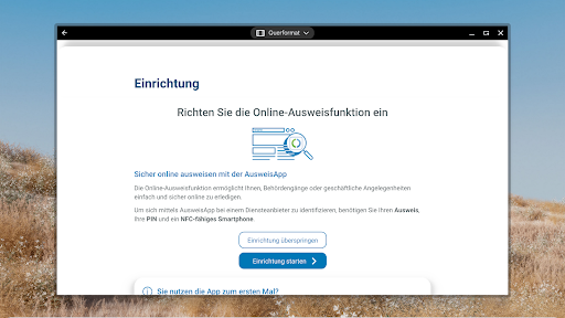The app works on mobile and desktop devices that support NFC. Check device compatibility at https://www.kartenapp.bund.de/mobile-geraete before installation.
