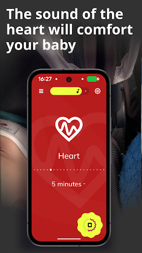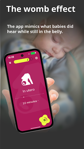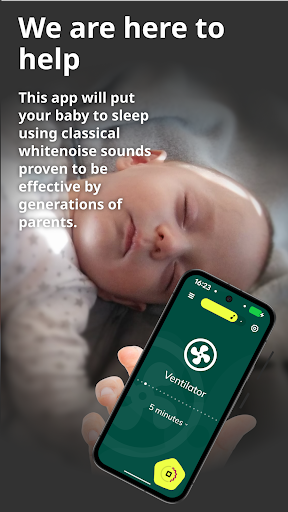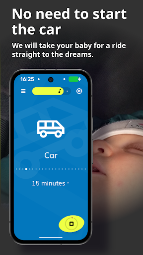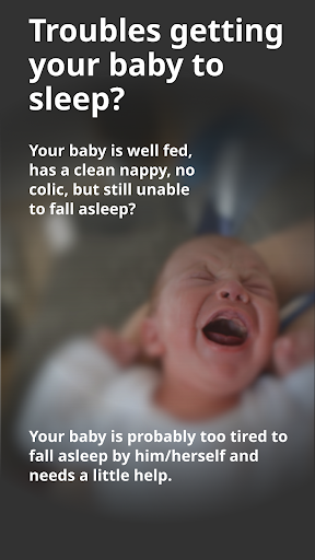 Download the app, open it, select a soothing sound or lullaby, and press play. Adjust volume and timer as needed in the main interface.