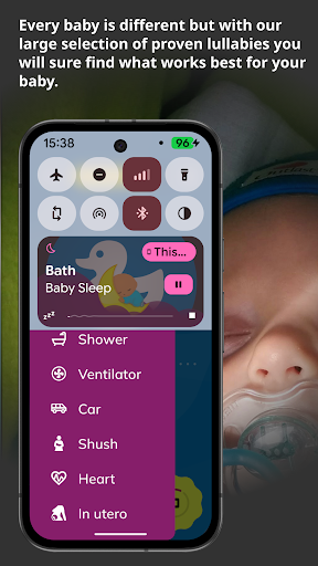 Browse the sound options, listen to previews, and select or layer sounds that your baby responds to best. Save your preferences for quick access.