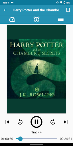 Tap the download icon on the book or audiobook details page to save it for offline access under My Downloads in the app.