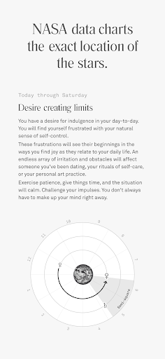 What sets Co–Star apart is its emphasis on precision and authenticity, leveraging NASA data to calculate accurate birth charts. Its main highlights include: