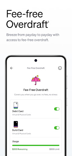 Activate overdraft protection and paycheck advance from the 'Accounts' > 'Overdraft & Advance' settings. These features help in emergencies without extra fees.
