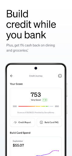 Order the Build Card through the app, use it like a regular debit card, and it helps build your credit score without checks. Find this in the 'Cards' section.