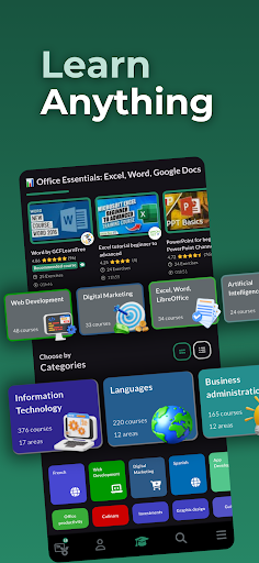 Download and open the app, create an account, then browse or search for courses to enroll and start learning immediately.