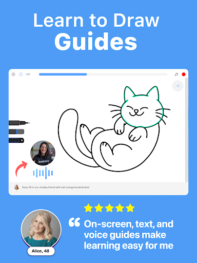 Includes tutorials and guided lessons that help users learn to draw step-by-step.