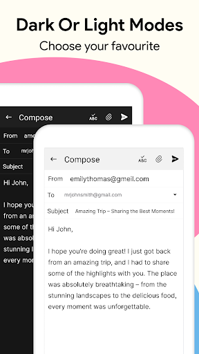Compared to other communication apps, Email - Fast and Smart Mail's key differentiators lie in its unmatched real-time speed and media handling capabilities. While some email clients focus on minimalist design or integration with other apps, this app emphasizes rapid, reliable message delivery, ensuring you're never left waiting during critical exchanges. Moreover, its integrated media sharing is notably more robust, supporting a wider range of file types and sizes, which is particularly useful for professionals sharing presentations, images, or videos on the fly. These features set it apart as a more dynamic and versatile communication tool, suited to both personal life and tight-knit professional teams.
