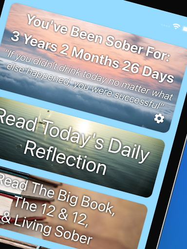 The sobriety counter is displayed on the main screen, tracking your days sober automatically once you set your start date in settings.