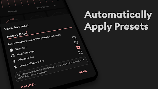 Pre-set profiles like Pop, Rock, Jazz, and more are available on the main screen. Tap on 'Presets' to select or customize your preferred audio profile.