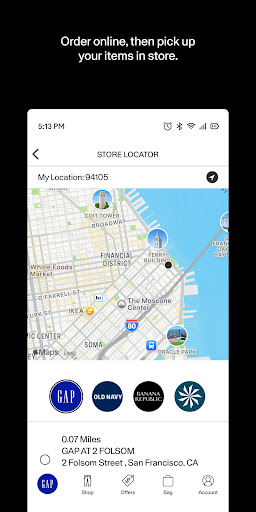 How do I find nearby Gap stores for in-person shopping or pickup?