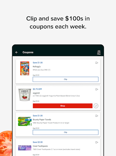 Yes, navigate to 'Deals' to browse weekly ads, clip digital coupons, and save deals for easy checkout.