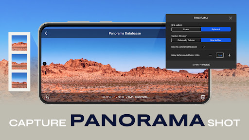 Select 'Panorama' mode, choose horizontal or vertical, then tap 'Start.' The drone automatically captures images, stitching them into a seamless panorama.