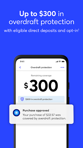 Qualifying direct deposits can enable up to $300 overdraft protection, set up via Settings > Overdraft in the app.