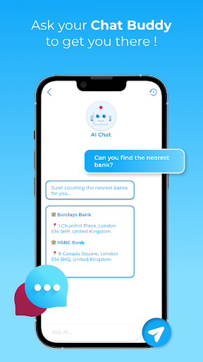 Tap the AI icon or voice input, ask questions about locations, and receive instant insights, coordinates, and suggestions directly on the screen.
