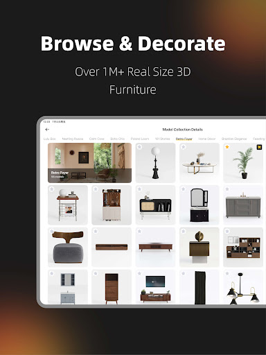- Extensive Furniture & Decor Library: The app supplies a vast collection of furniture, fixtures, and decorative objects sourced from real brands, enabling personalized and authentic interior styling.