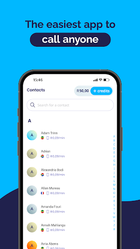 Purchase credits as needed without subscription commitments. Credits are used to dial international numbers, making calling flexible and affordable.