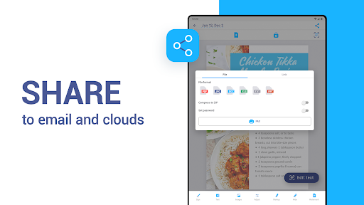 Supports exporting scanned files as PDFs, images, or directly sharing via cloud services.