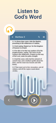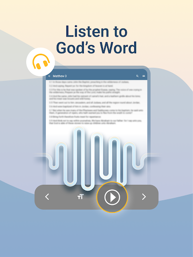 Tap the audio icon on the verse or chapter, and then select the ‘Play' button to listen while following along in the scripture.