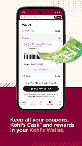 Easily earn and redeem Kohl's Cash and rewards directly within the app.