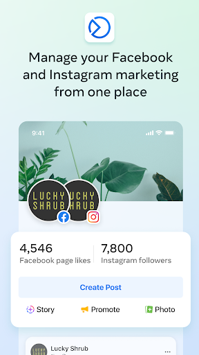 Download the app from App Store or Google Play, log in with your Facebook account, and connect your Facebook Page and Instagram account via Settings > Accounts.