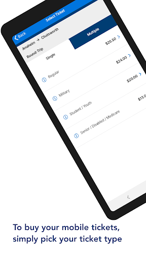 You can purchase single rides, round-trip tickets, and multi-day passes like 7-Day or Monthly passes within the app via simple options.
