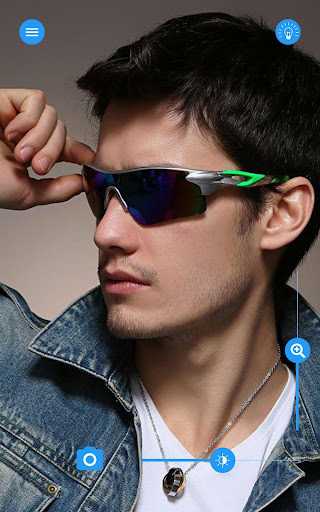 The app provides adjustable lighting, on-screen zoom, selfie capture, mirror frames, and image freezing for a personalized grooming experience.
