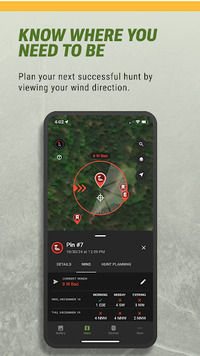It provides interactive maps, satellite views, terrain overlays, and tools to mark key locations like stands and food plots, accessible via the Planning tab.
