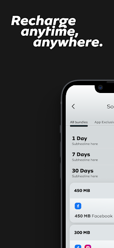 Users can easily top up, check balances, and manage plans within the app.