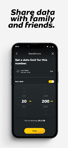 Go to 'DataShare', select the recipient, enter the data bundle, then confirm to share your data easily.