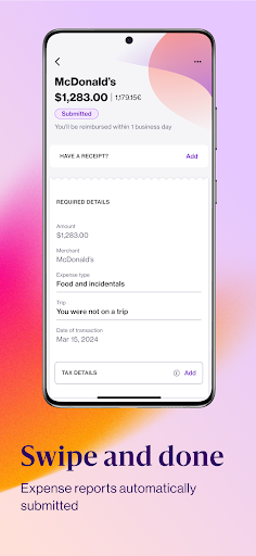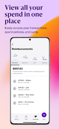 Navan's corporate cards automatically track expenses, categorize transactions, and allow quick submission for reimbursement through the app's expense module.