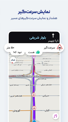 Neshan provides real-time traffic updates and alerts for police or speed cameras. Enable these in Settings > Traffic & Safety for better alerts.