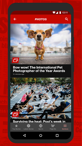 Swipe through main tabs like News, Sports, Entertainment, Business, Page Six, and more for comprehensive coverage.