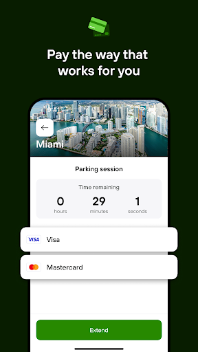 Download the app on Android or iOS, create an account, enter your vehicle details, and add a payment method through Settings > Payment Methods to start parking.