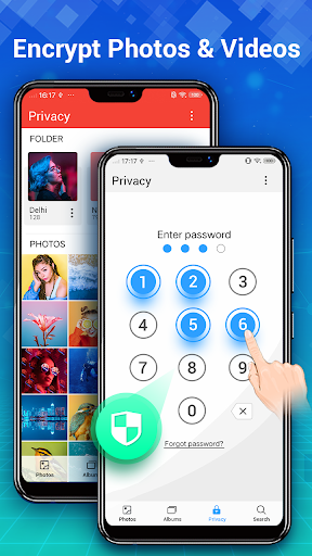 Encrypted vault protects private images, adding a layer of security for sensitive content.