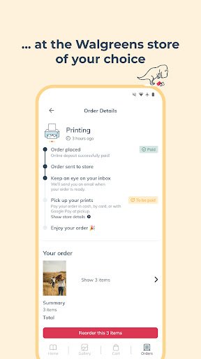 Users can easily pick up printed photos at nearby Walgreens locations, providing convenient options.
