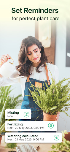Smart alerts about watering, fertilizing, and repotting help users maintain healthy plants consistently.