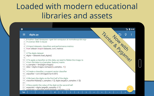 If you're a Python enthusiast or a developer constantly on the move, Pydroid 3 offers a comprehensive environment to code, test, and run Python 3 scripts directly on your Android device. Developed by IIEC (the Indian Institute of Embedded Computing), this app aims to bring desktop-level Python programming to the convenience of your pocket.
