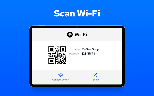 It can decode various QR code types, including URL links, contact info, and Wi-Fi credentials.
