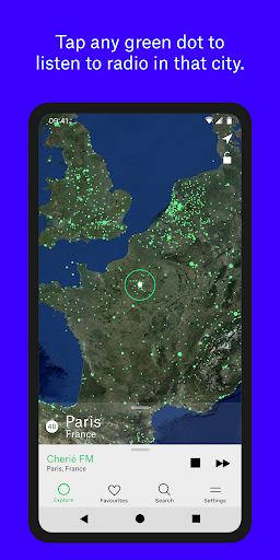 Download the app, open it, and simply spin the globe or tap a green dot to start listening to a station from your chosen location.