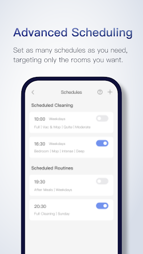 Yes, navigate to Schedule in the app, set your preferred times, and customize cleaning strength, water flow, or mopping for each session.