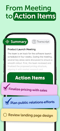 Yes, select your note or recording, then tap 'Summarize' to generate concise key points and summaries within the app.