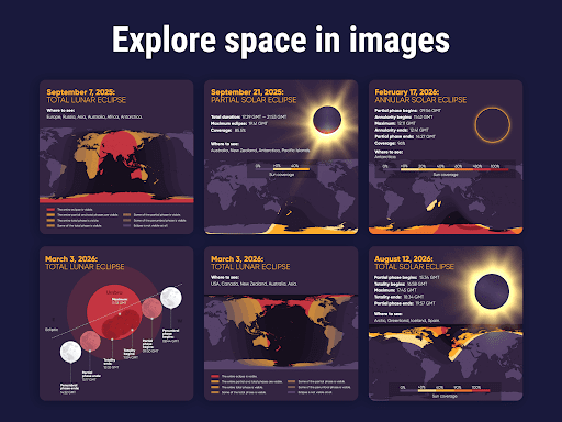 Includes detailed descriptions, facts, and animations that enhance understanding of astronomical objects.