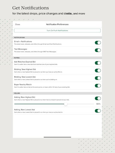 Download the app, tap 'Sign Up', and follow the prompts to register. Once registered, explore listings and place bids or asks to get started.