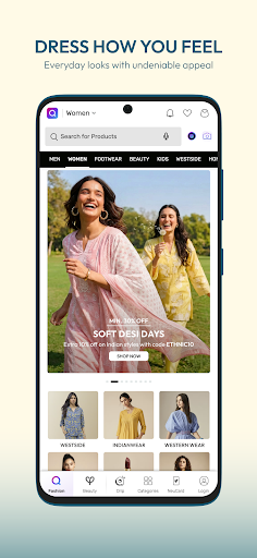 From the moment you open Tata CLiQ Fashion, the interface greets you like a well-organized wardrobe—clean, inviting, and thoughtfully arranged. The vibrant banners and well-curated collections immediately draw your eye to the latest trends and exclusive offers. The app's design strikes a delicate balance between colorful visuals and minimalist layouts, ensuring the shopping journey is both delightful and straightforward.
